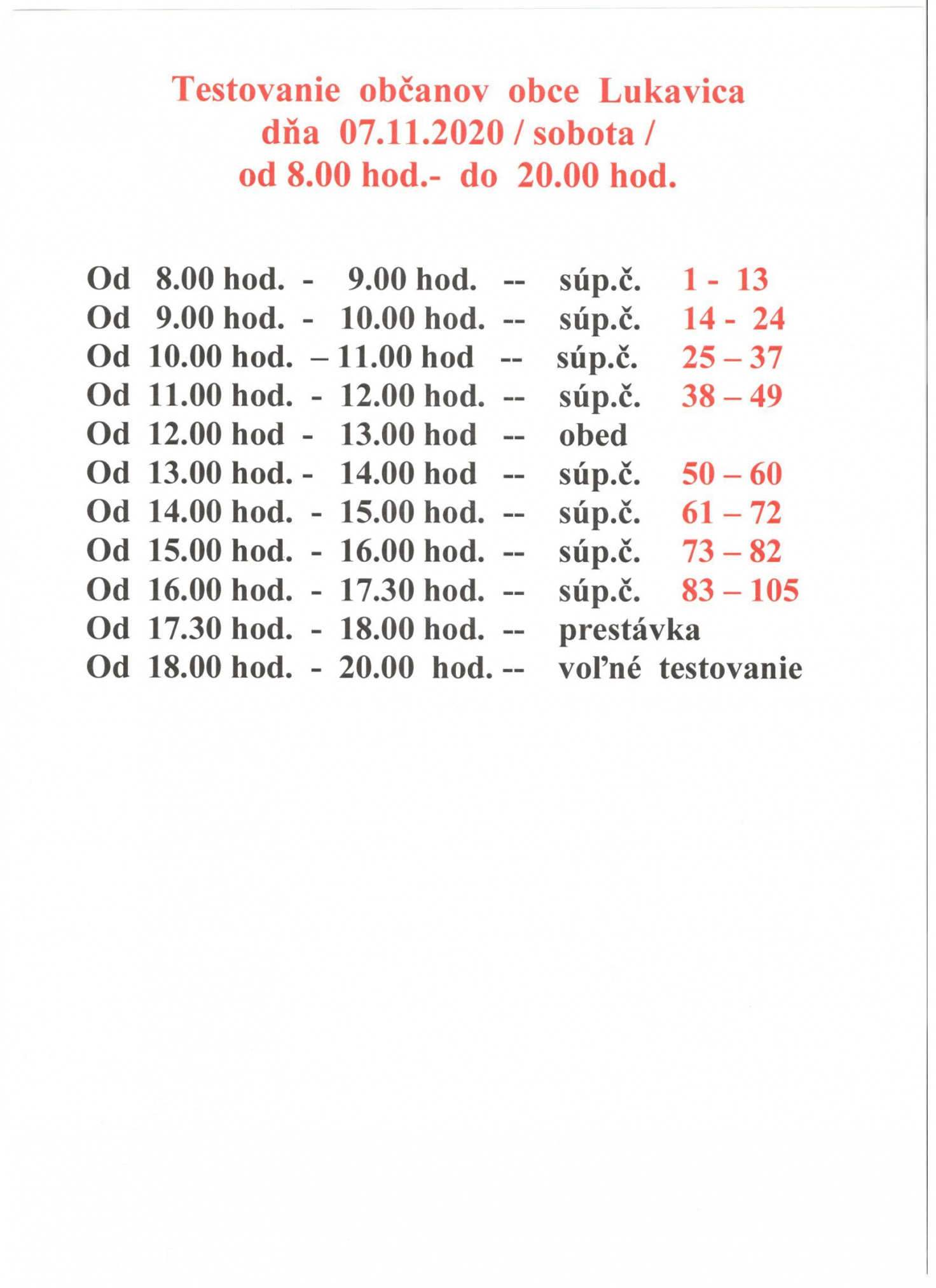 Testovanie na covid 19 v Lukavici 07.11.2020